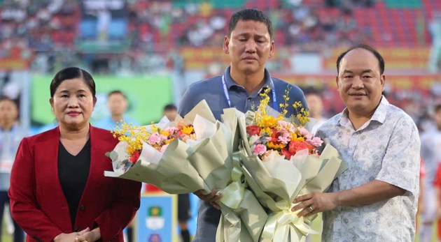 Trước khi bóng lăn, bầu không khí trên sân đã trầm lắng hơn thường lệ. Lãnh đạo tỉnh Bình Phước cùng CLB đã dành tặng những bó hoa tri ân cho HLV Nguyễn Anh Đức, người đã cống hiến hết mình cho đội bóng trong thời gian qua. Giây phút nhận hoa, cựu tiền đạo ĐT Việt Nam không kìm được nước mắt. Đứng bên đường pitch, ông lặng lẽ nhìn học trò khởi động, trong lòng đầy tâm trạng khi chuẩn bị kết thúc hành trình tại Bình Phước.
